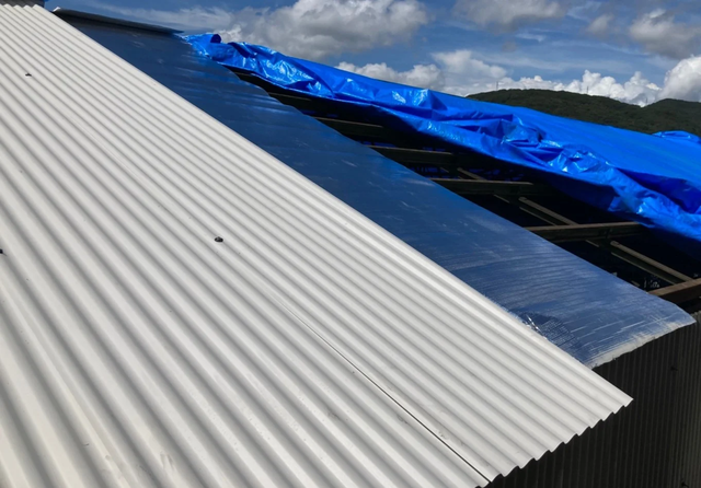 建物に風の通り道はあるものの、中で作業するには不十分だったため、屋根に遮熱工事を行いました。