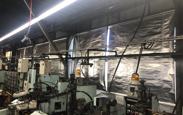 熱を発する機械の周りには不燃性の遮熱カーテンを設置すると効果的です。
